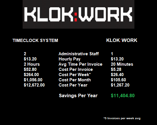 CHANGING FROM TIME CARD AND HAND WRITTEN SYSTEMS TO KLOKWORK THESE SHOPS IMPROVED EFFICIENCY BY 91% AND 83% RESPECTIVELY